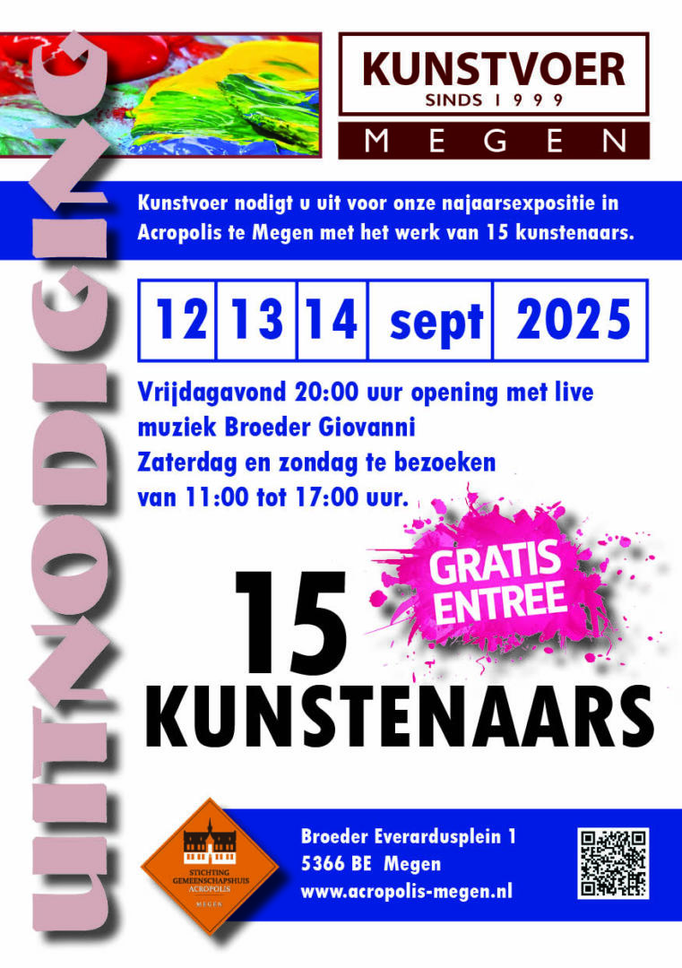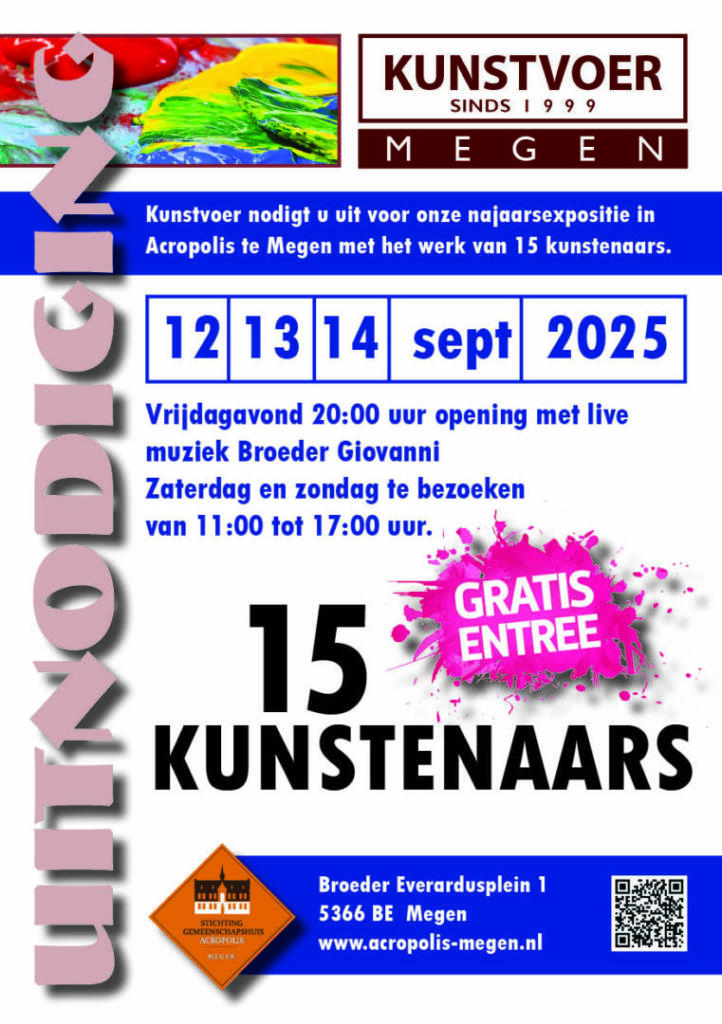 Bezoekers kunnen dit weekend genieten van de expositie Kunstvoer, met werk van 15 verschillende kunstenaars. De expositie is te bezoeken op zaterdag 13 en zondag 14 september van 11.00 tot 17.00 uur. Bezoek van de expositie is vrij toegankelijk, een vrijwillige bijdrage wordt op prijs gesteld. Kunstenaars uit de regio tonen hun werk in diverse stijlen en technieken: van schilderijen en keramiek tot textiel, fotografie en beeldhouwwerk. Een inspirerende mix van kunstvormen en creatieve visies komt samen in deze veelzijdige expositie. Ontmoet de makers, ontdek hun unieke kijk op kunst en laat je verrassen! Meer weten over Kunstvoer, kijk dan hier.
